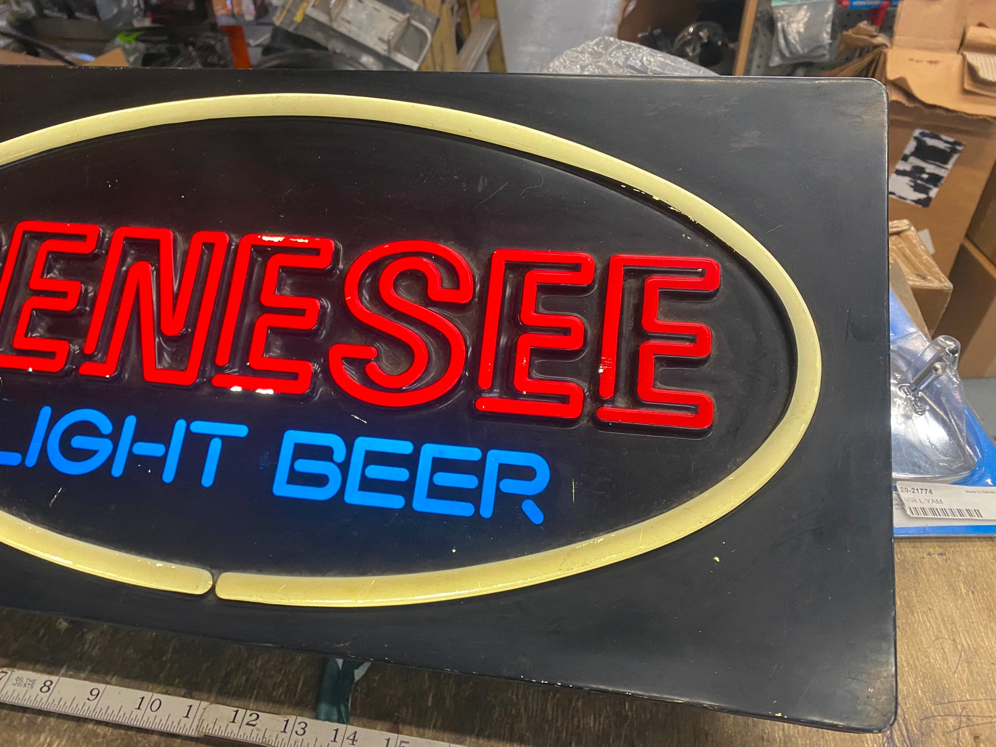 Vtg Genesee Light Beer Sign Bar Room Tavern Man Cave Wall Collectible 23x11 selling off a collection of beer lights signs! check out our other listings!!