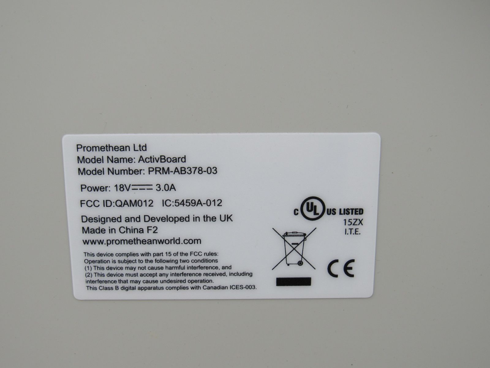 - Promethean Activ-Board Dry Erase Whiteboard 78-in 18V 3.0A PRM-AB378-03.