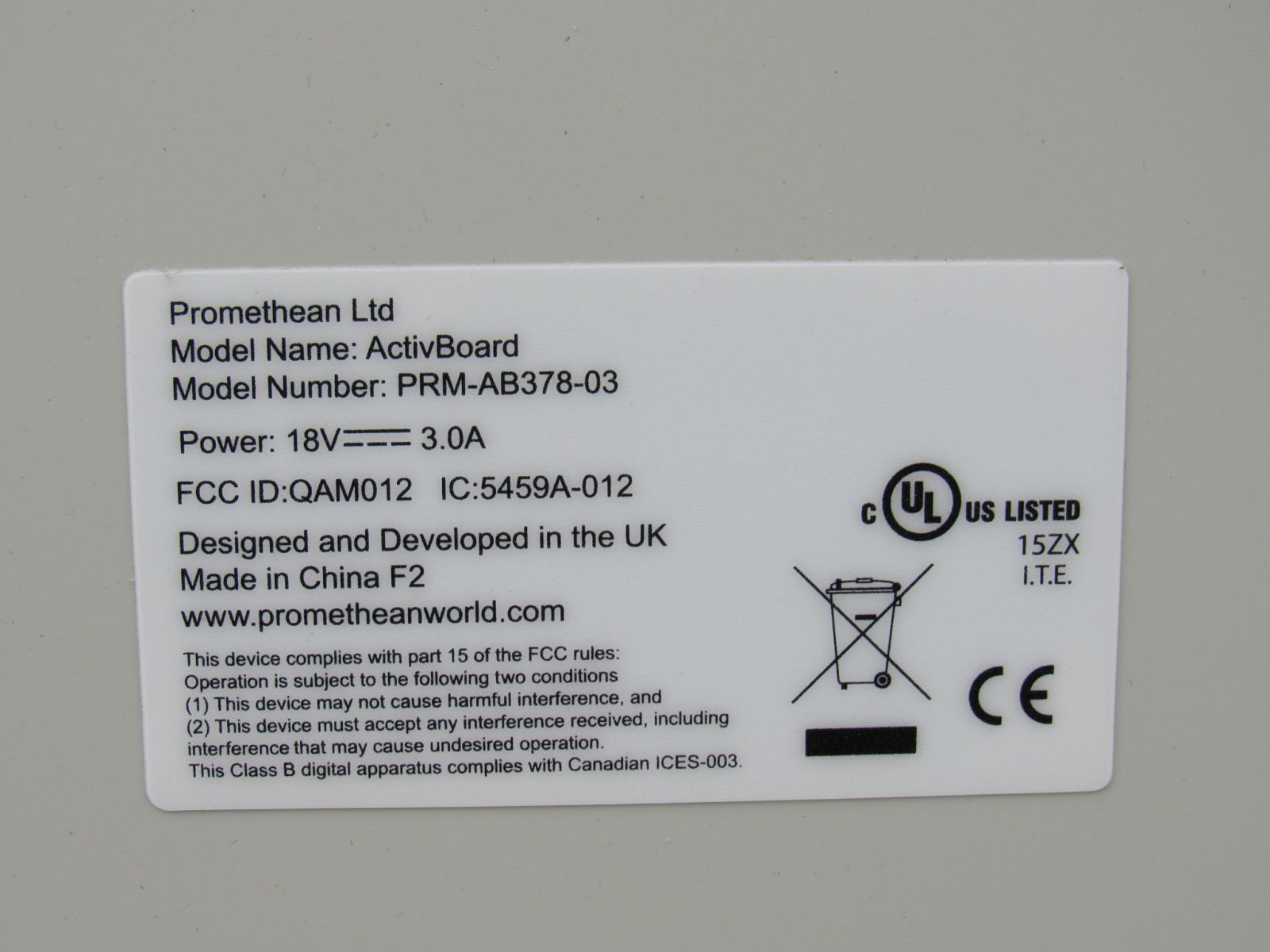 - Promethean Activ-Board Dry Erase Whiteboard 78-in 18V 3.0A PRM-AB378-03.