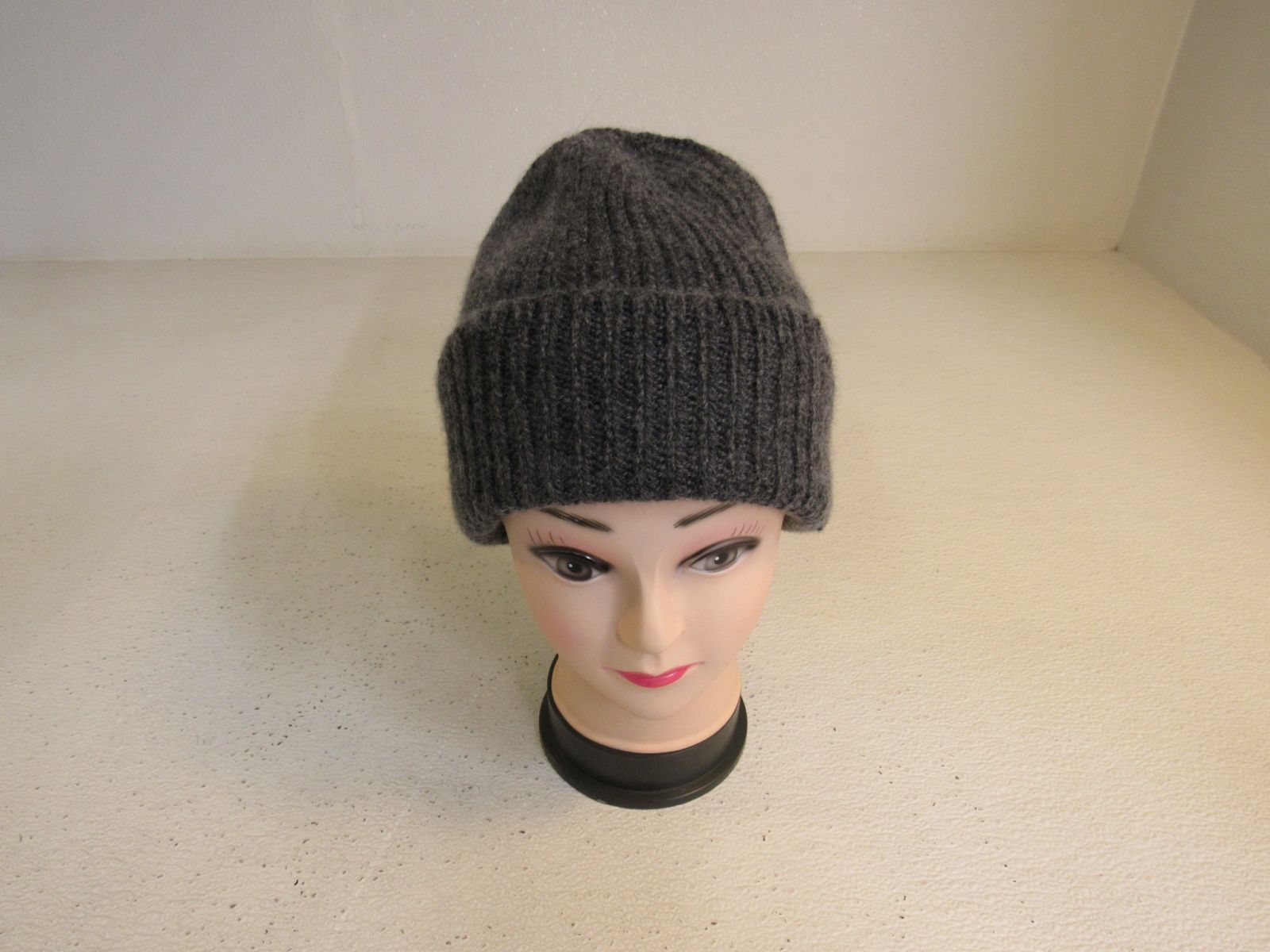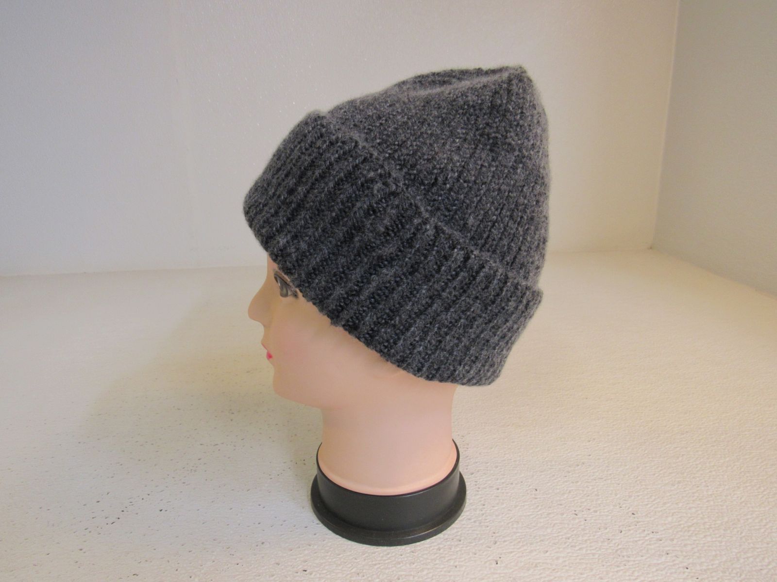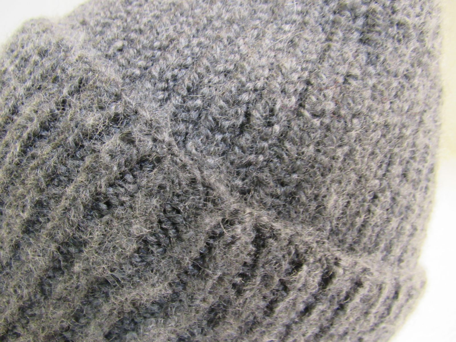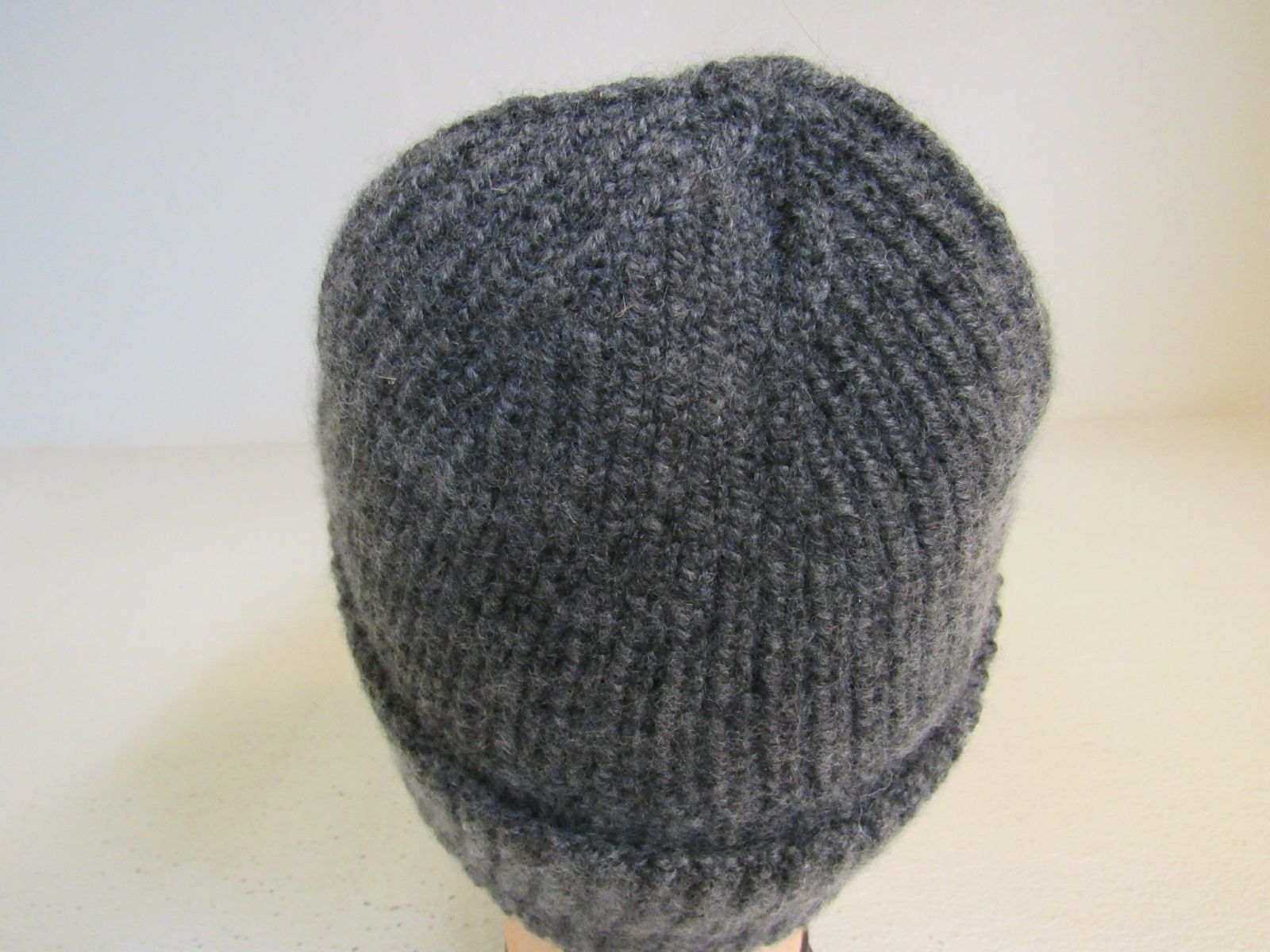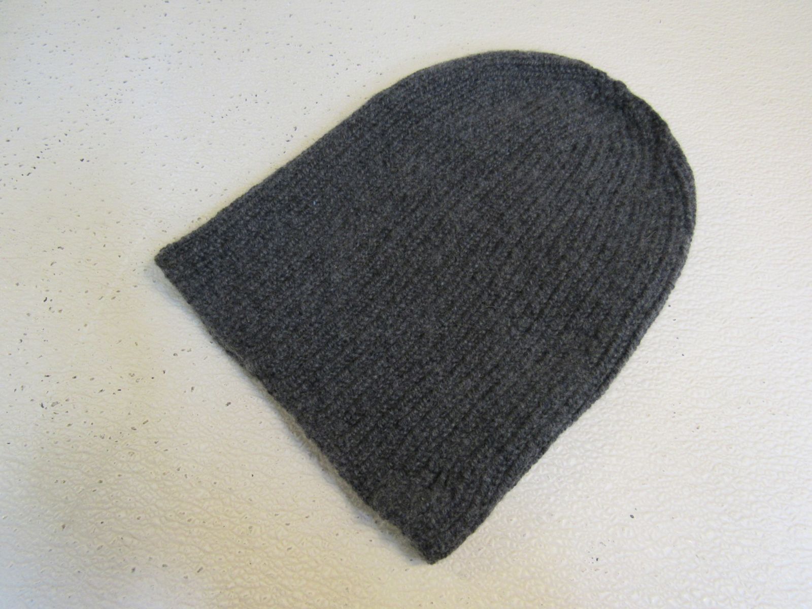 - Textured hat knit with undyed yarn.